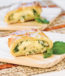 - Acrescente a batata ralada, o creme de leite e o espinafre picado e refogado no azeite. Deixe esfriar.