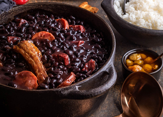 Sirva com arroz branco, couve refogada e, se desejar, farofa, torresmo, molho de pimenta e fatias de laranja.