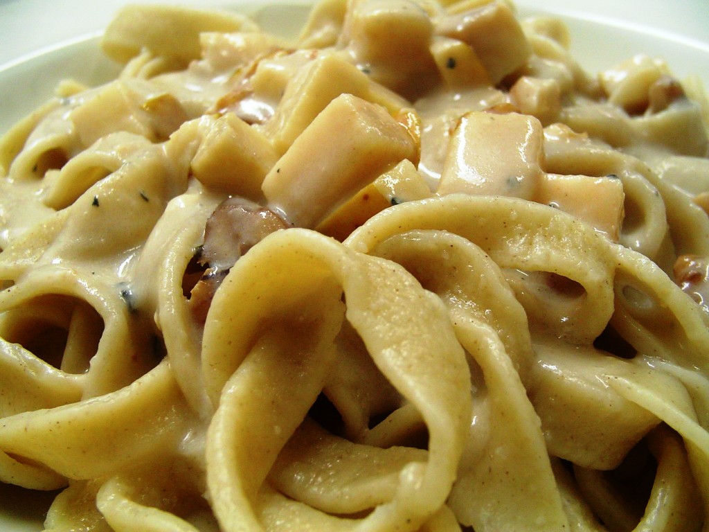 Quando a massa estiver “al dente”, escorra e adicione-a ao molho, em fogo baixo, junto com o restante do azeite.