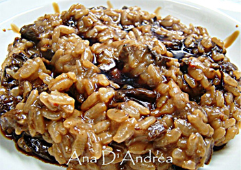 - Coloque o risoto em uma travessa e adicione um pouco do melaço por cima.