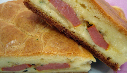 Prepare o recheio: em uma panela, aqueça o restante do óleo, doure a cebola e as salsichas, salpique a salsinha e deixe esfriar.