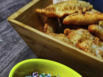 Depois é só colocar o recheio da sua preferência, fechar a massa com um garfo e fritar em óleo bem quente.