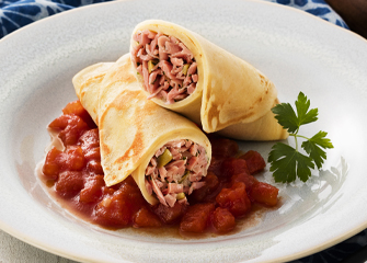 - Recheie as panquecas e cubra com o molho de sua preferência.