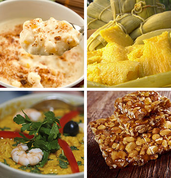 6- Mungunzá: doce feito de grãos de milho branco levemente triturados, cozidos em leite de coco ou de vaca, açúcar, canela em pó ou casca e cravo da Índia.