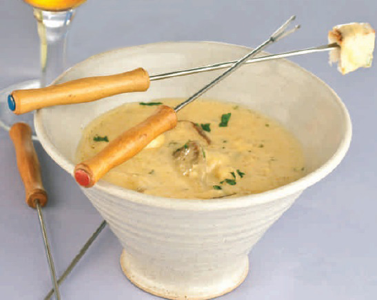 Misture bem o kirsch com a fécula de batata, despeje sobre o queijo e leve novamente ao fogo para engrossar.