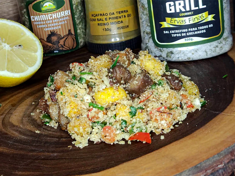 - 2 xícaras (chá) de farinha de mandioca torrada