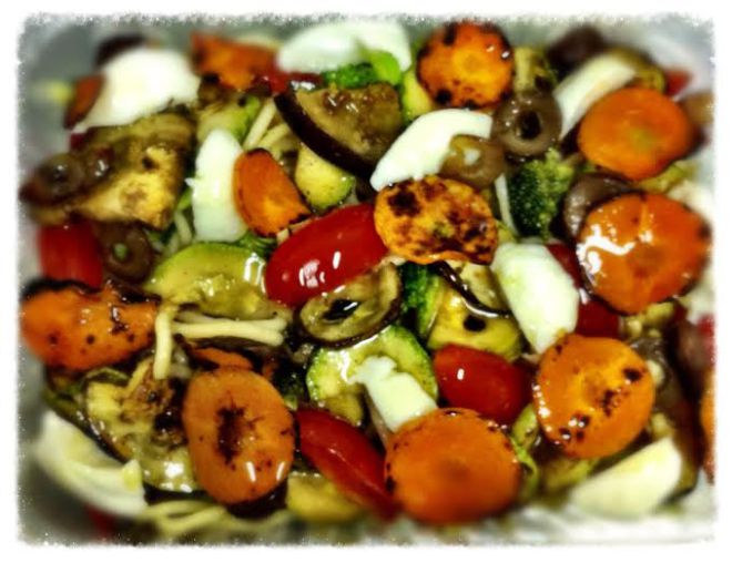 - Sirva como antepasto, acompanhamento para carnes ou massas (na foto os vegestais estão misturados com algumas muçarelinhas de búfala).