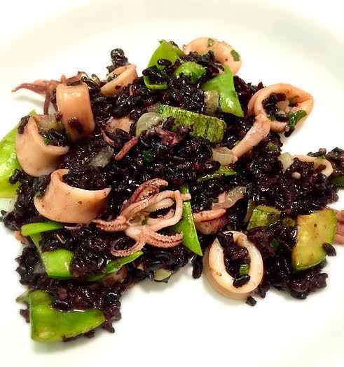 - Assim que as 3 etapas acima estiverem prontas, coloque o arroz na panela com as lulas e misture delicadamente.