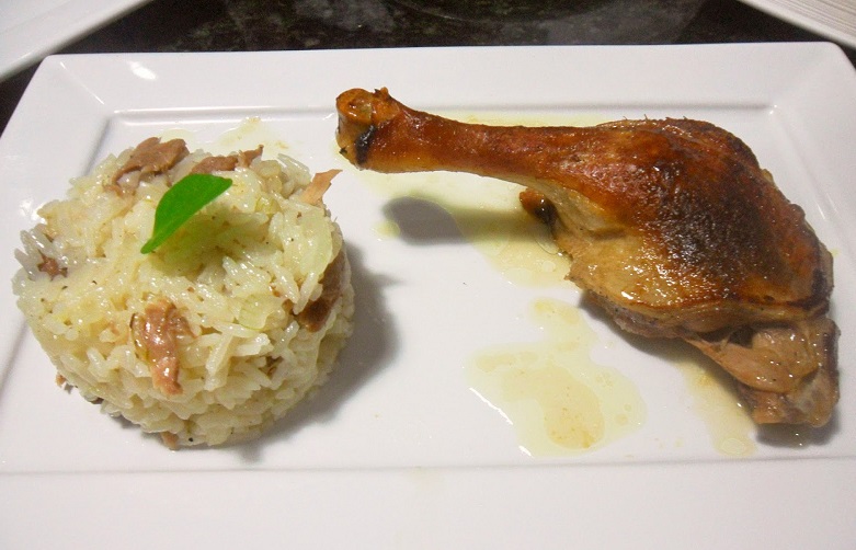 - Coloque as coxas de pato numa vasilha e esfregue com o sal e o açúcar mascavo.