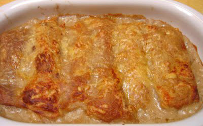 - Despeje o resto do molho, polvilhe o queijo por cima e leve ao forno, em fogo alto (200ºC), para gratinar.
