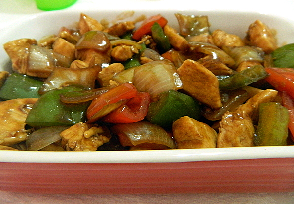 - Aqueça uma panela do tipo wok em fogo forte, acrescentae o óleo e frite o frango até ficar dourado. Reserve.