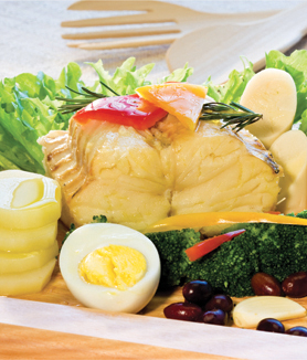 1. Cozinhe rapidamente o lombo de bacalhau e reserve. Na mesma água cozinhe as batatas em rodelas até que elas fiquem macias mas sem desmanchar.