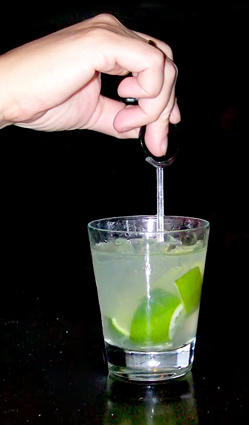 - Acrescente gelo a gosto, depois a cachaça e agite.