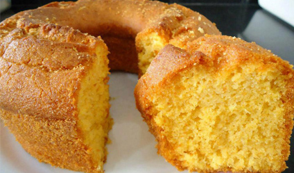 - Coloque a massa em uma forma de furo central, untada e enfarinhada, e leve ao forno, pré-aquecido a 200 ºC, durante 40 minutos ou até dourar.