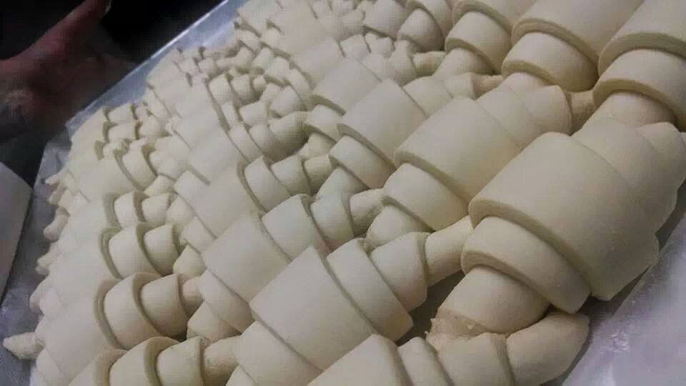 - Coloque os croissants numa assadeira, pincele com ovo batido e deixe em crescimento por 2 horas.