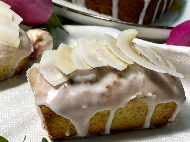 8. Deixe esfriar completamente, retire da forma, coloque a calda por cima e decore com coco ralado.
