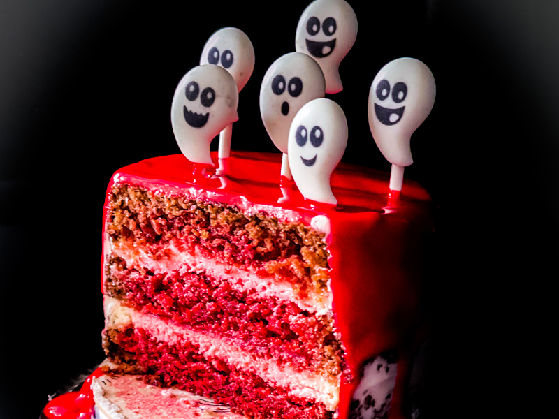 9. Faça esse procedimento na próxima camada e depois leve o bolo para gelar no congelador por 1 hora.