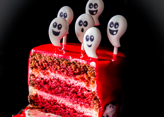 **** Glaçagem: coloque a água, o açúcar e a glucose de milho branca em uma panela e leve ao fogo médio até ferver. Retire do fogo e reserve. Em uma tigela, coloque o leite condensado e adicione essa mistura de água/açúcar/glucose. Acrescente a massa de gelatina derretida e misture. Em outra tigela, coloque o chocolate branco, acrescente a massa de gelatina e misture tudo até derreter o chocolate. Em seguida, bata com o mixer até obter uma mistura homogênea. Adicione o corante vermelho lipossolúvel e bata novamente com o mixer, tomando cuidado para não incorporar bolhas de ar.