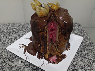 11. Retire o bolo da geladeira e coloque sobre ele a glaçagem**** na temperatura de 25ºC.