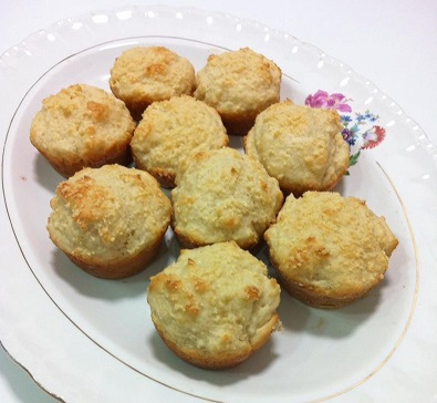 2. Coloque a massa, às colheradas, em forminhas de empada ou de muffins untadas com manteiga e polvilhadas com farinha de trigo (para mim renderam 12 pãezinhos).