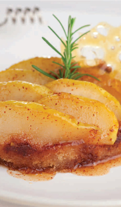 4. Coloque sobre a superfície as fatias de pera reservadas e leve ao forno durante aproximadamente 45 minutos.