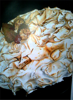 5. Cubra o bolo com o marshmallow, puxe com uma colher formando ondas e depois flambe.