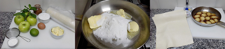 Coloque a manteiga e o açúcar numa frigideira e faça uma calda. Acrescente a canela.