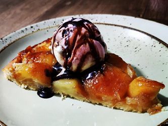 Vire a torta em um prato e sirva com sorvete de creme ou outro sabor de sua preferência.