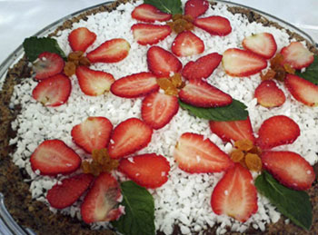 4- Para ornamentar, use morangos e folhas de hortelã (como na foto) ou outros ingredientes de sua preferência.
