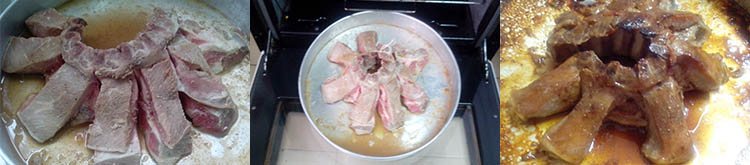 Coloque a carne numa assadeira redonda e amarre com um barbante nos dois primeiros ossinhos, formando um círculo. Cubra com papel alumínio.