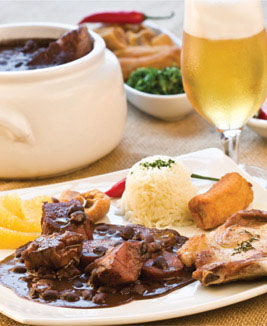 Sirva com arroz branco, couve refogada e, se desejar, farofa, torresmo, molho de pimenta e fatias de laranja.