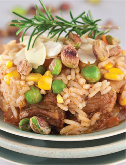 Sirva com arroz branco e torradas de pão italiano. Um bom vinho Sangiovese italiano é uma ótima pedida para harmonizar.