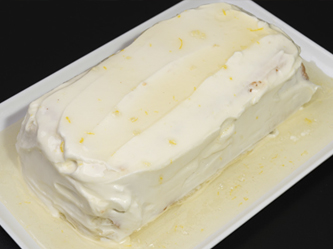 Cubra-o generosamente com o glacê de limão e decore com o restante das raspas de limão e com fatias de limão.