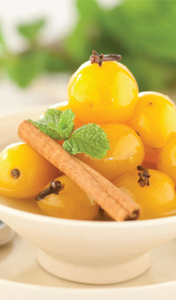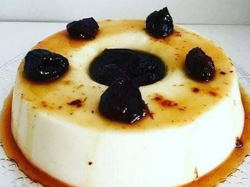 5. Desenforme o manjar e sirva-o com calda de ameixa.