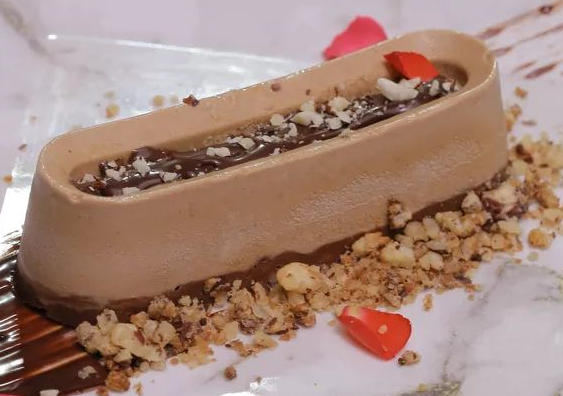 • Com a sobremesa congelada, retire da forma de silicone (a sobremesa deve estar congelada, para que saia perfeitamente da forma de silicone).