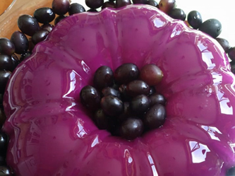 Prepare uma gelatina de uva e coloque-a depois por cima da mousse, desenformando somente no dia seguinte.
