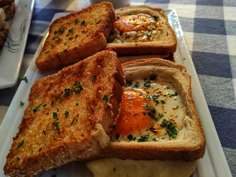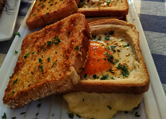 Com uma faquinha, tire o miolo de uma das fatias de cada lanche deixando só as extremidades - aqui a ídeia é formar um quadrado, levando-o novamente à frigideira, onde você adicionará 1 ovo no centro de cada fatia para fritar.