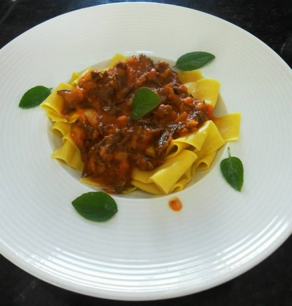Em outra panela, ferva a água e coloque a massa pappardelle.