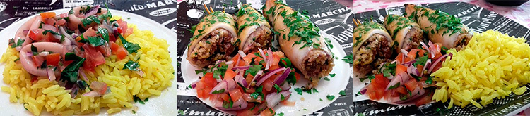 Recheie as lulas com essa farofa e leve ao fogo com manteiga e azeite até dourarem.