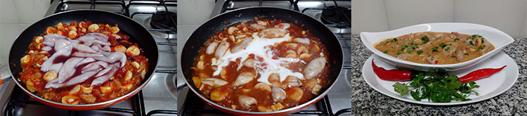 Acrescente as lulas que estavam de molho junto com o vinho.