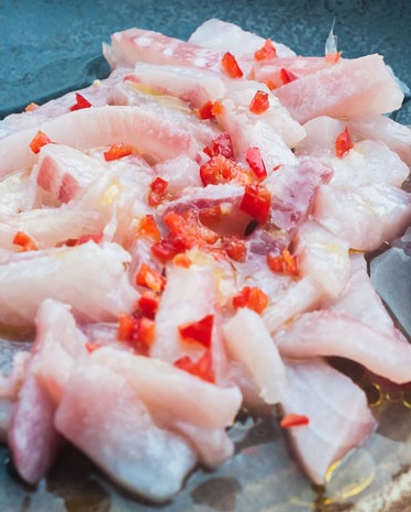 Sirva na concha da própria vieira com meia colher de café de geleia de tomate e algumas folhinhas de tomilho.