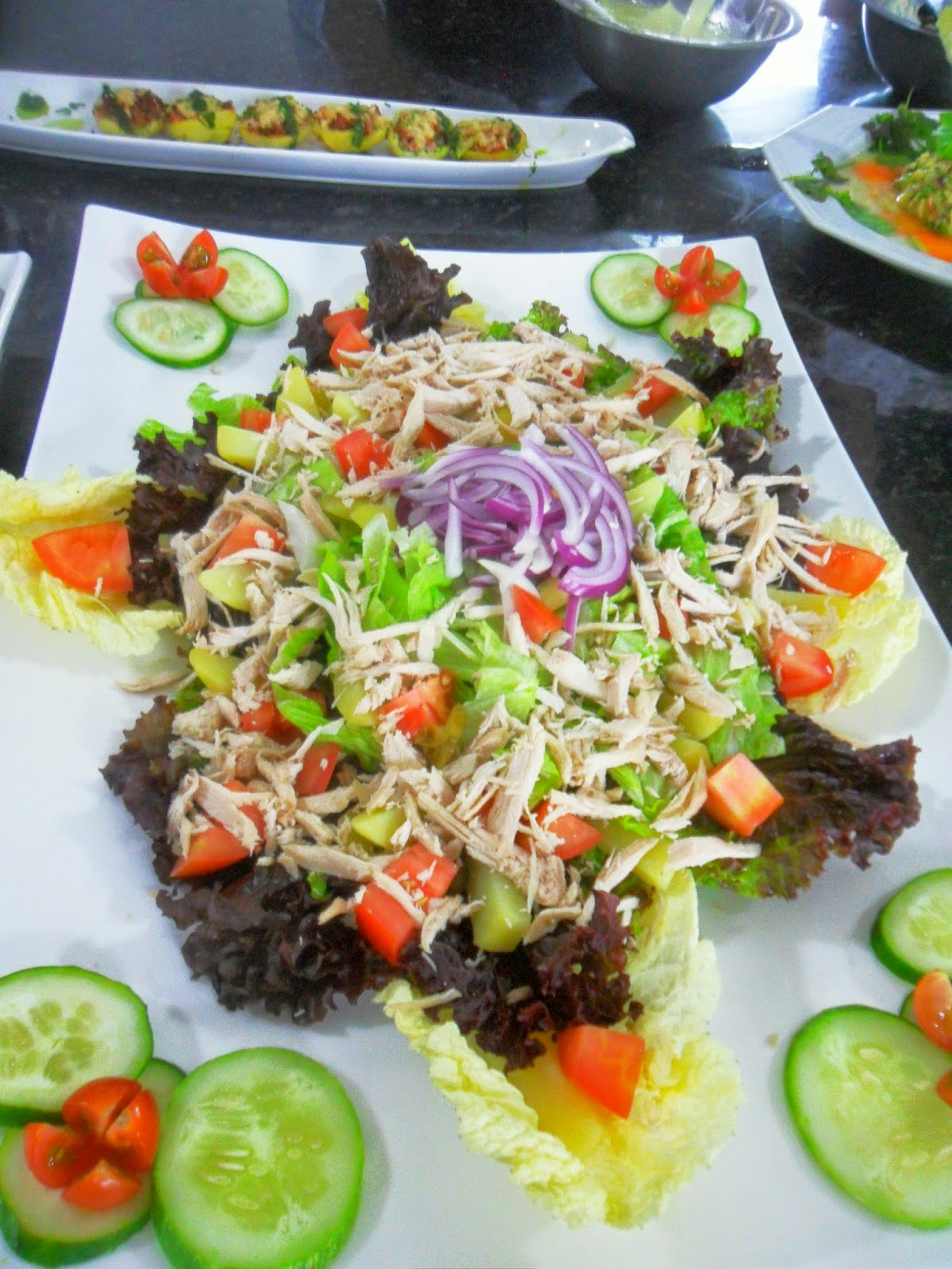 - Faça uma cama com as folhas de alface previamente higienizadas e sobrepostas umas às outras.