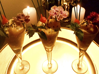 Toque do chef: sirva em taças altas e decore com flores comestíveis, folhas de hortelã e cebolete, como na foto.
