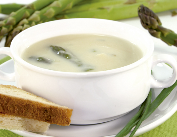 - Adicione os aspargos frescos (limpos e picados), as batatas cortadas em cubos e o caldo de legumes.