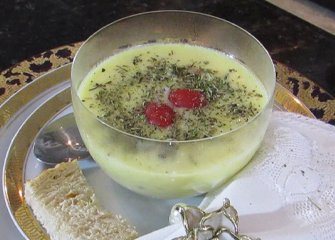 Dica da chef: sirva a sopa bem quente acompanhada de uma misturinha de ½ xícara de azeite de oliva, ¼ de xícara de cebolinha picada e um tico de sal. Fica deliciosa e reconfortante.