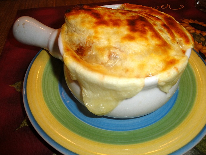 - Ferva o caldo de legumes e cozinhe nele as cebolas cortadas em rodelas finas.
