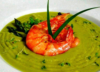 Para finalizar, salpique com salsinha picada e decore o creme com as pontas dos aspargos e camarões previamente fritos ou refogados.